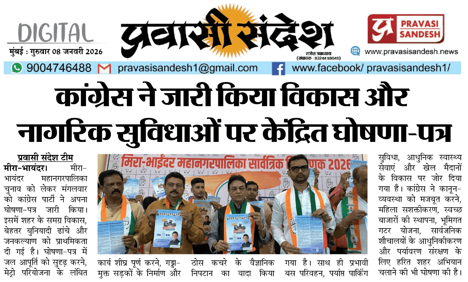 कांग्रेस ने जारी किया विकास और नागरिक सुविधाओं पर केंद्रित घोषणा-पत्र