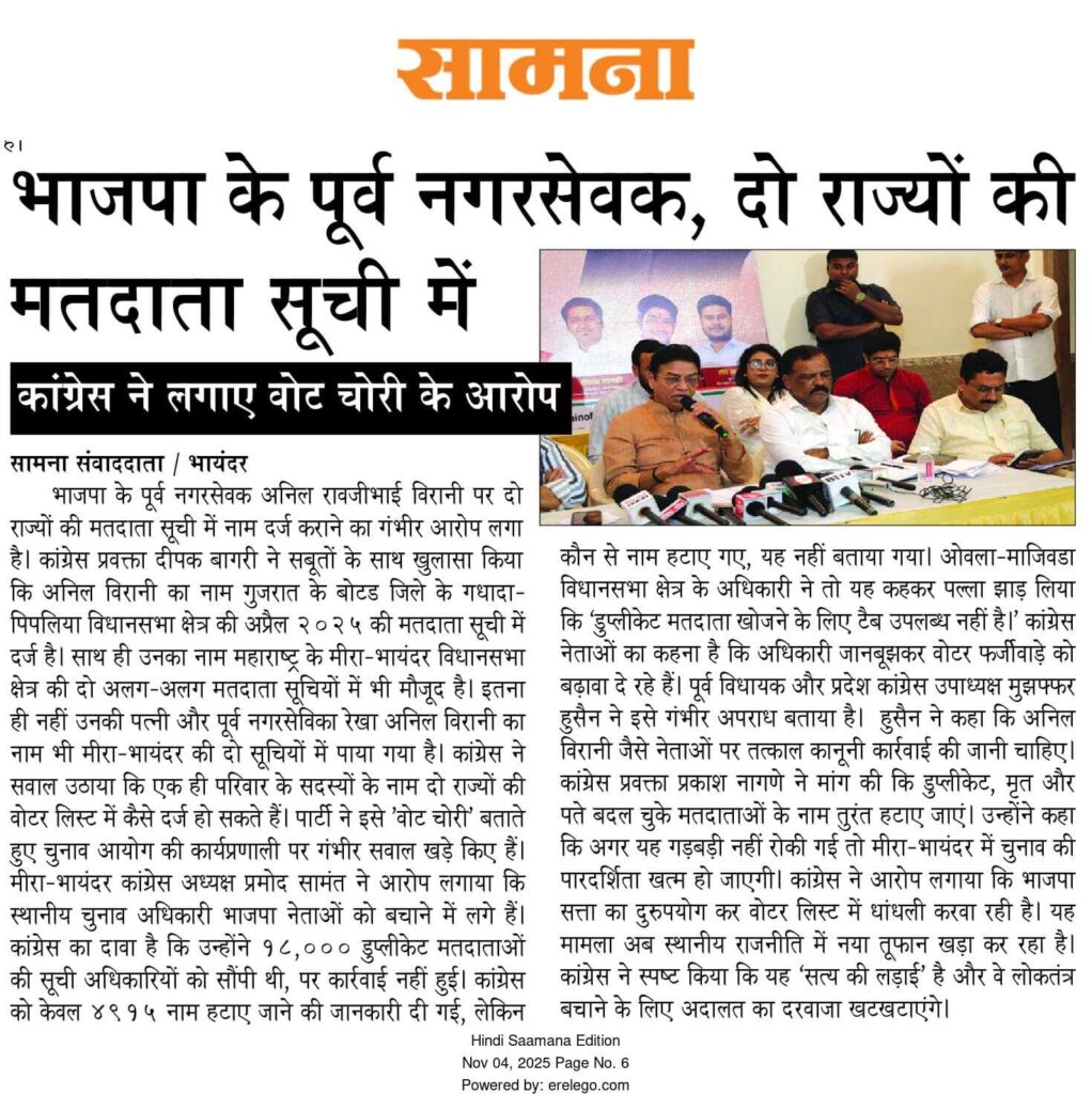 गुजरात और मीरा-भायंदर में भाजपा के पूर्व नगरसेवक और पत्नी का मतदाता नोंदणी का कांग्रेस का आरोप
