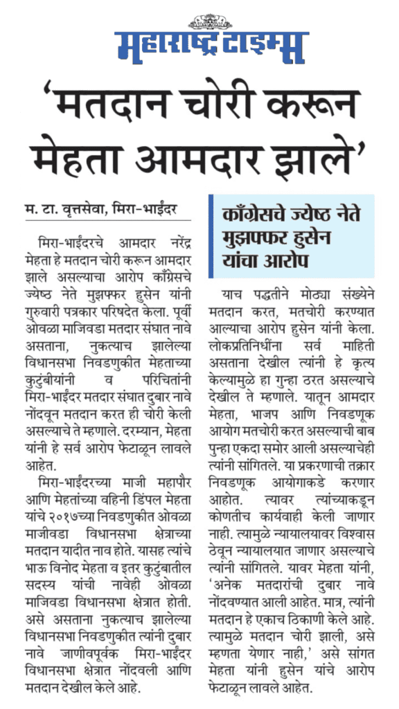 मतदान चोरी करून मेहता आमदार झाले