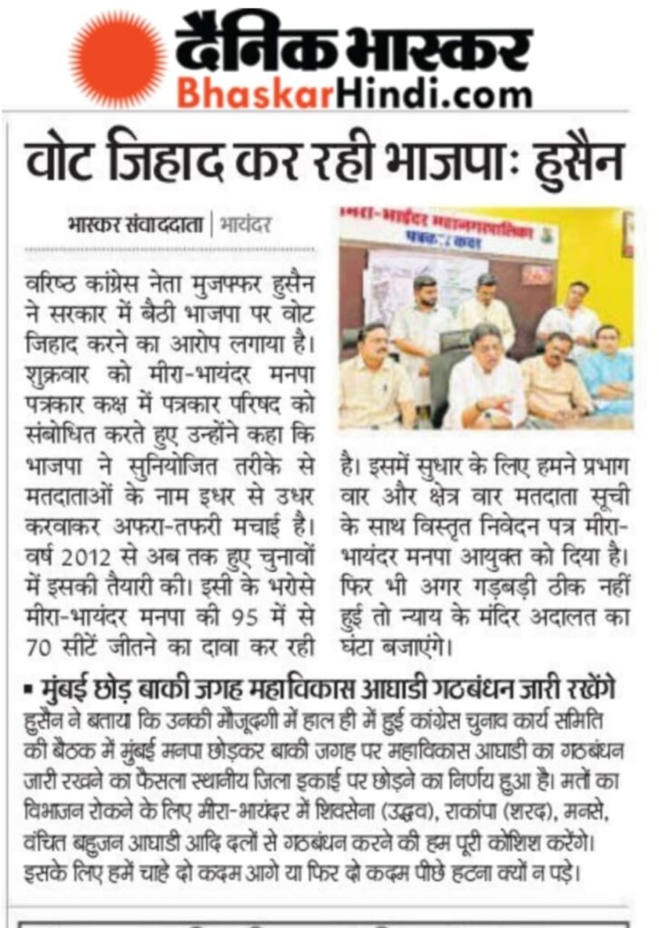 वोट जिहाद कर रही भाजपाः हुसैन