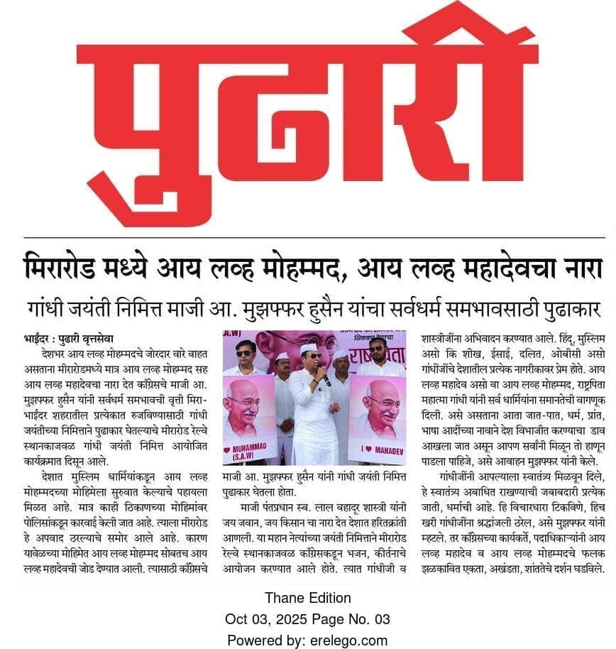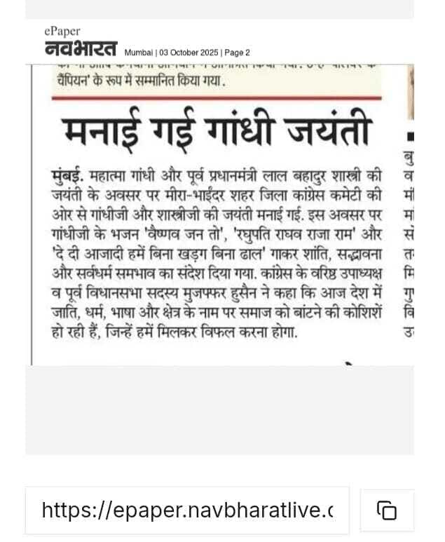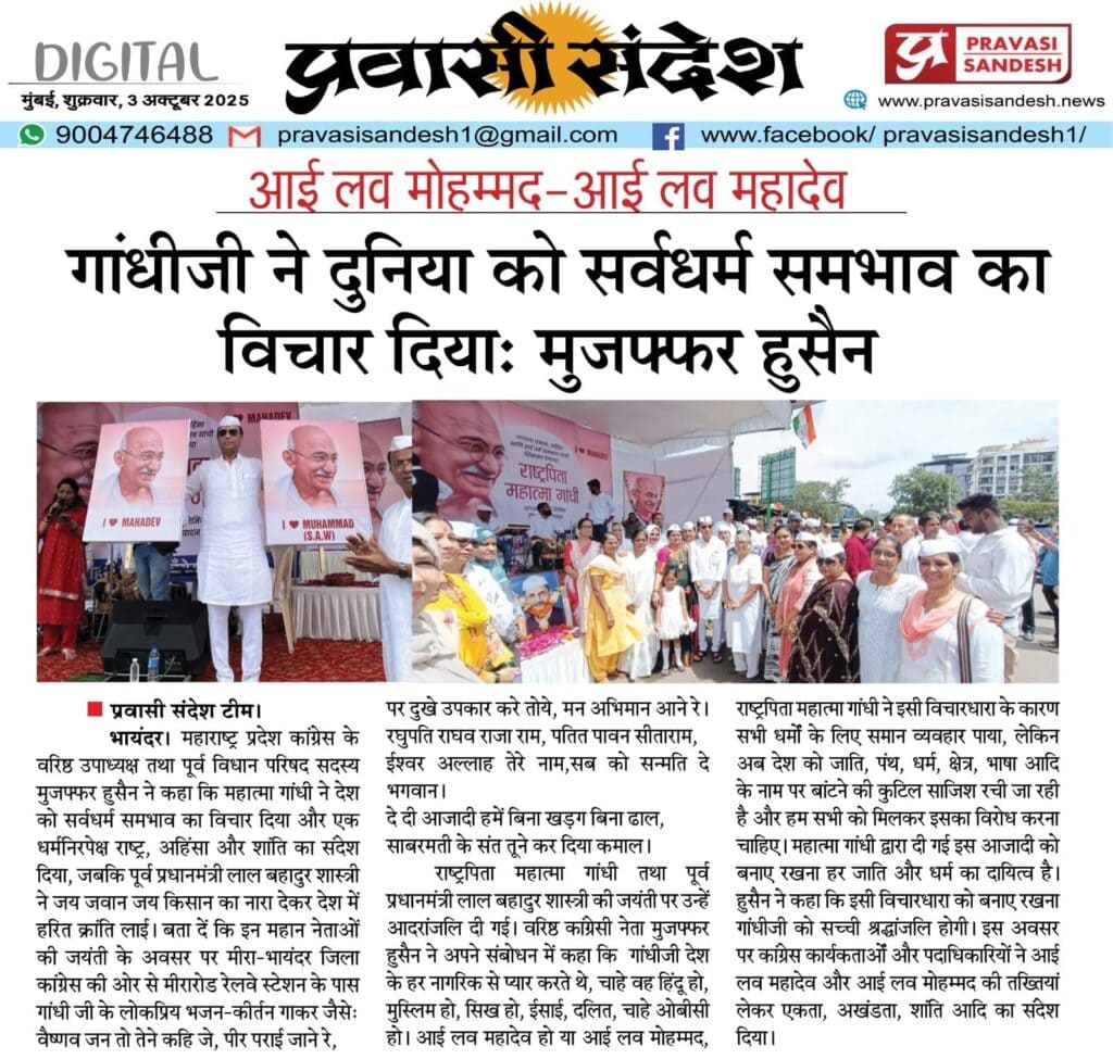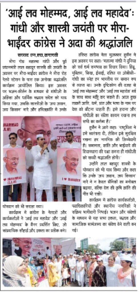 गांधी और शास्त्री जयंती पर मीरा- भाईंदर कांग्रेस ने अदा की श्रद्धांजलि