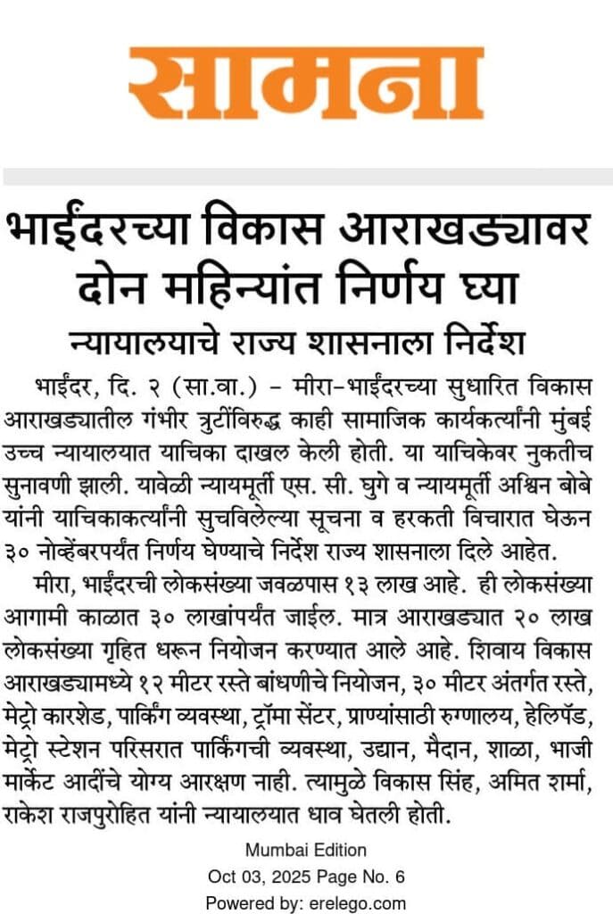 भाईंदरच्या विकास आराखड्यावर दोन महिन्यांत निर्णय घ्या