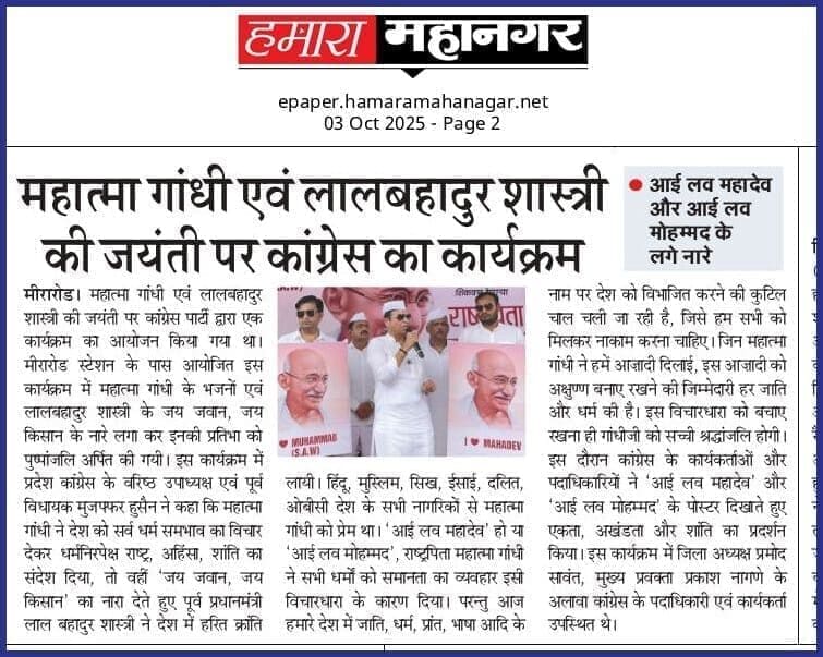 महात्मा गांधी एवं लालबहादुर शास्त्री की जयंती पर कांग्रेस का कार्यक्रम