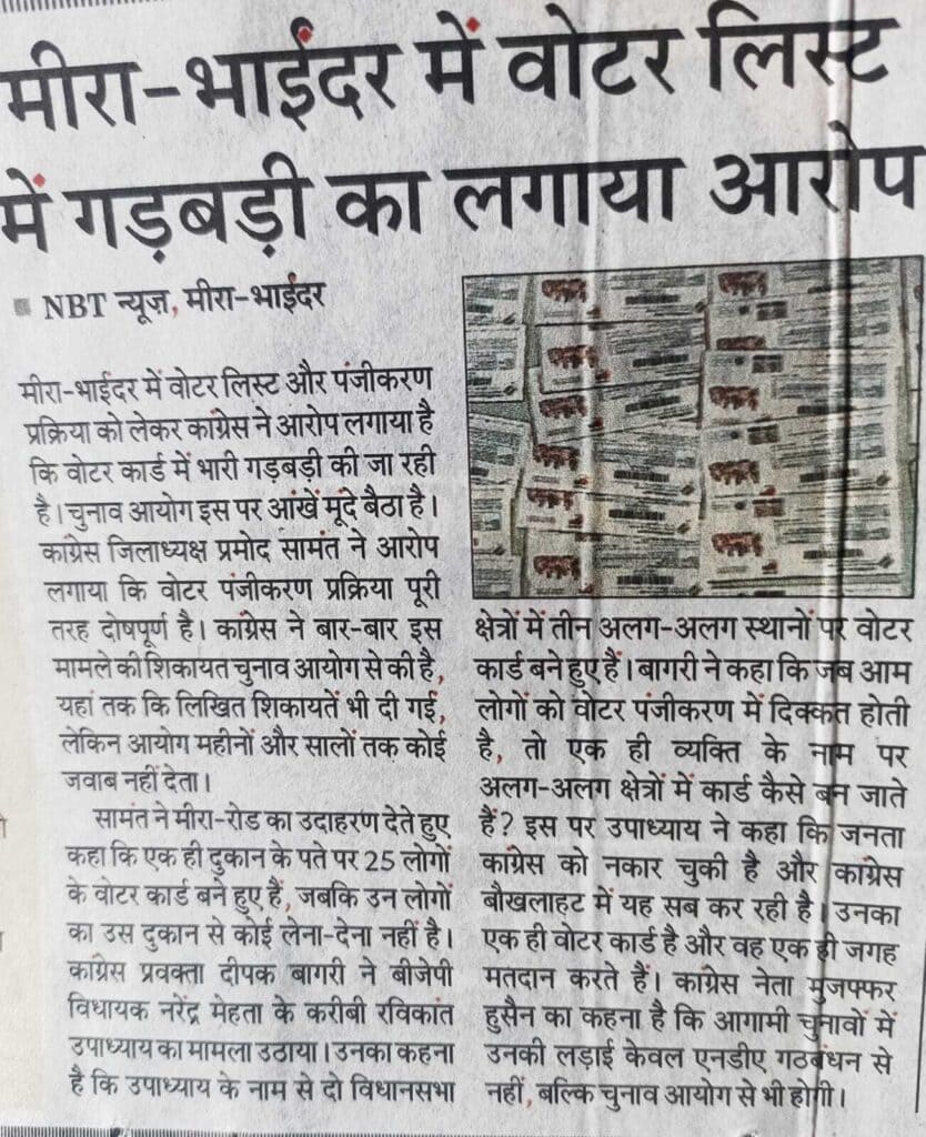 मीरा-भाईंदर में वोटर लिस्ट में गड़बड़ी का लगाया आरोप